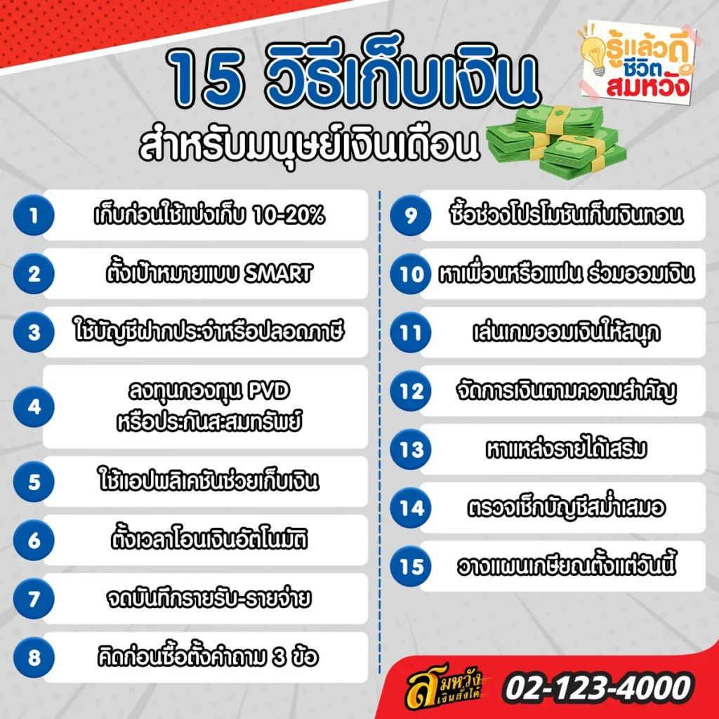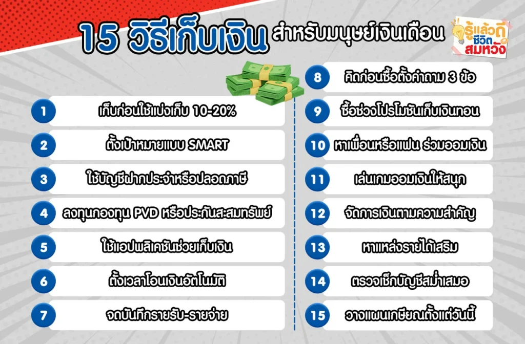 15 วิธีเก็บเงิน เงินเดือนเท่าเดิมก็มีเงินเก็บได้