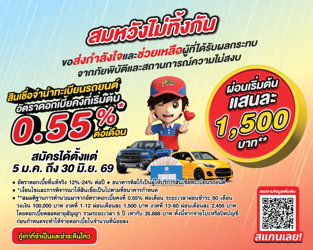 มองหาเงินด่วน ใช้ช่วงเปิดเทอม สู้เพื่อลูกด้วยสินเชื่อจำนำทะเบียนรถ รถแลกเงิน ที่สมหวัง เงินสั่งได้ กรอกข้อมูลผ่านไลน์ให้เราติดต่อกลับ