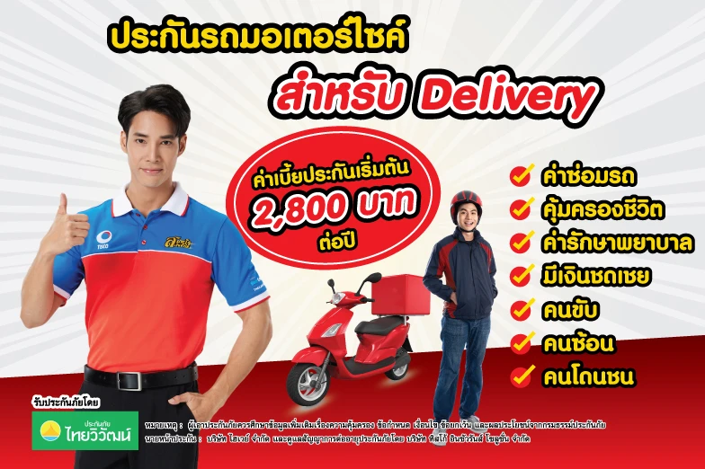 ค่าเบี้ยประกันภัยเริ่มต้น 2,800 บาทต่อปี เฉพาะกลุ่มอาชีพ Delivery เท่านั้น