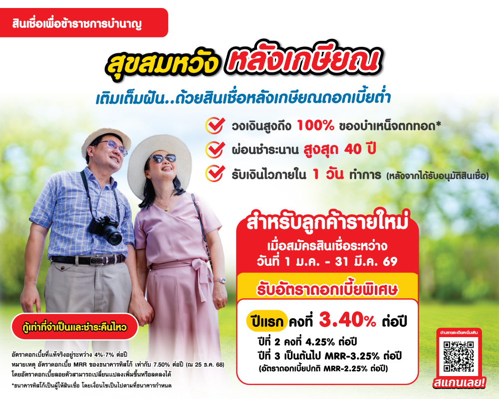เงินกู้ข้าราชการบำนาญของสมหวัง เงินสั่งได้ สูงสุด 480 เดือน