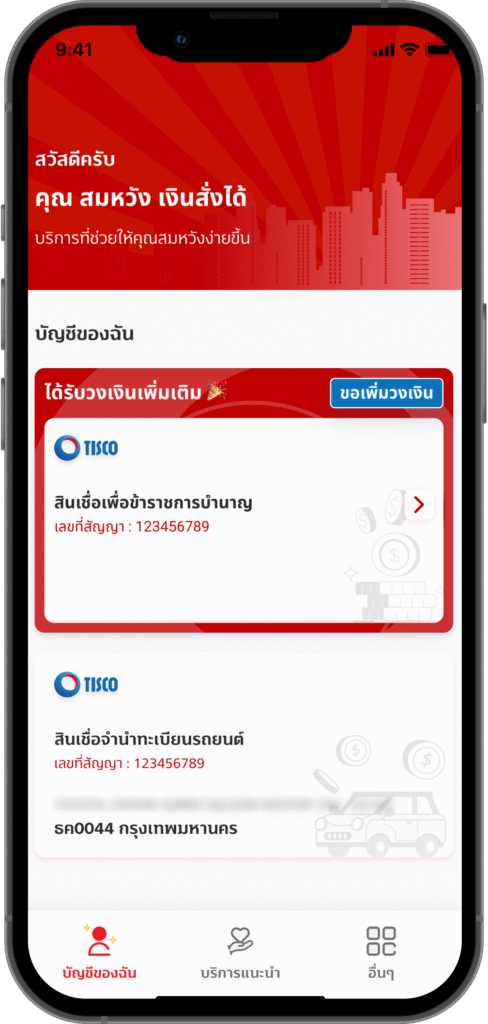 ติดต่อตามสินเชื่อที่ท่านใช้บริการ