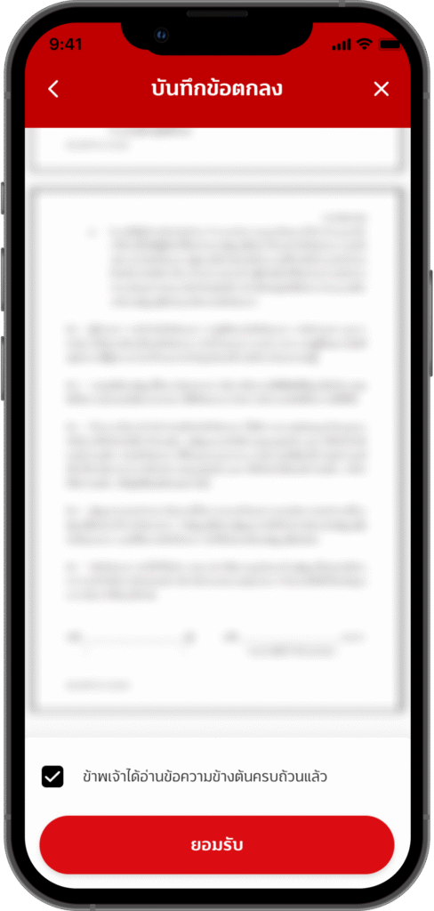 อ่านข้อกำหนดและเงื่อนไข กด checkbox และ กดปุ่ม “ยอมรับ”