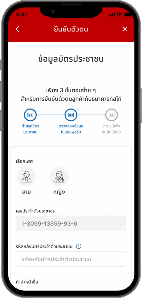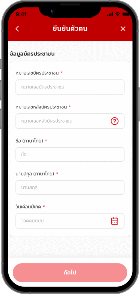 กรอกข้อมูลบัตรประชาชน และ กดปุ่ม “ถัดไป”